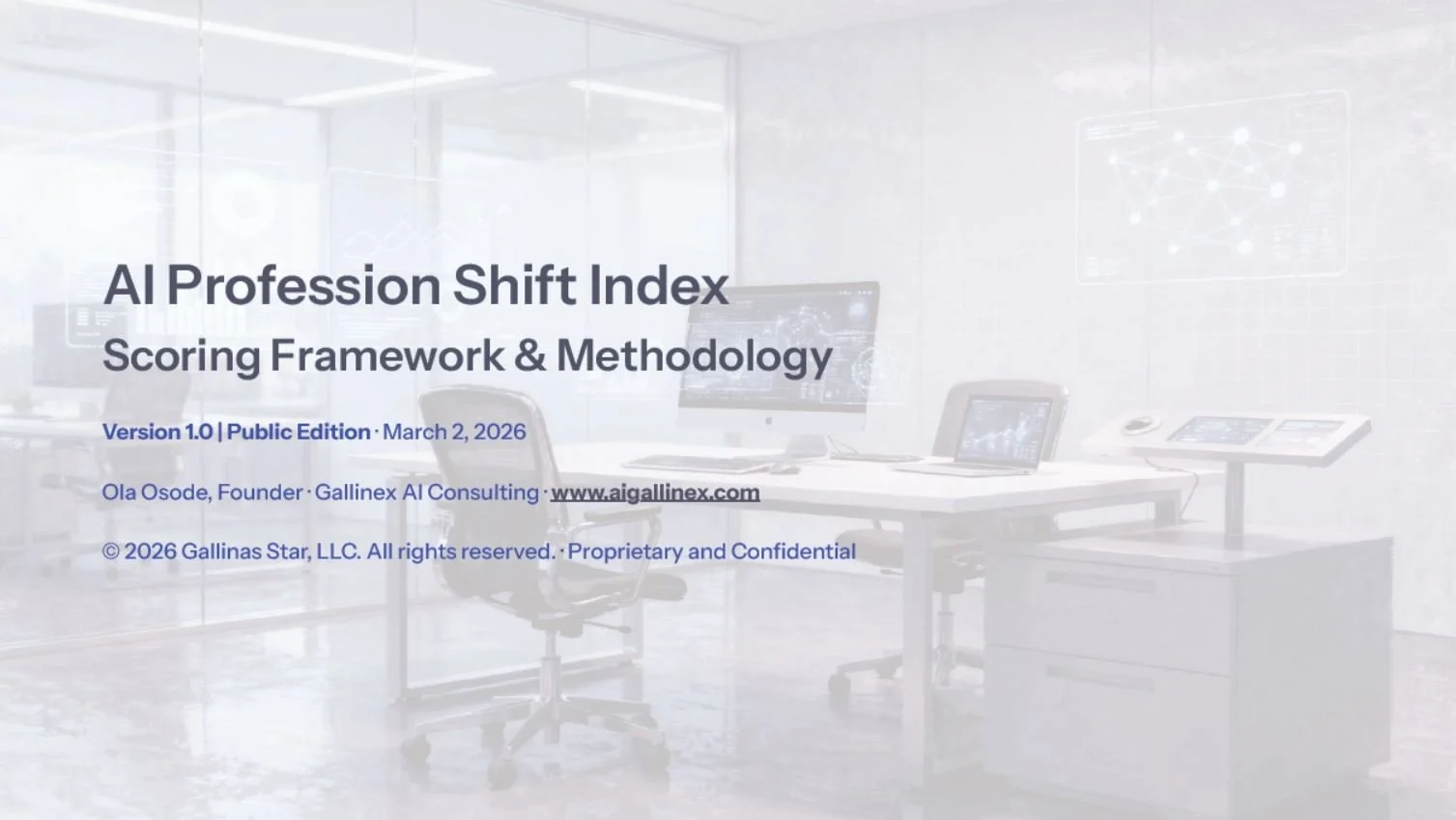 The Gallinex AI Profession Shift Index is an analytical framework built on publicly available information and structured assessment methodology. It supports informed decision-making but does not replace it. Individual outcomes vary depending on circumstances no general framework can fully anticipate.